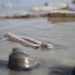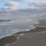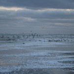 Bei Nordwind werden immer Muscheln an den Strand gespült und das war Heute Morgen eine gute Gelegenheit für die Möven. Entlang am Strand sammelten sie sich um an der Uferkante Muscheln und andere Kleintiere zu sammeln. Der Himmel hatte auch eine schöne Färbung. Das morgentliche Blau paarte sich mit den dicken von der aufgehenden Sonne bestrahlten Wolken. Egal ob kalt – es war einfach nur schön.