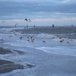Heute Nachmittag trauten sich auch vereinzelte Urlauber an den Strand. Der Wind war nicht mehr so doll und man konnte Vögel bei auflaufendem Wasser auf Futtersuche beobachten.