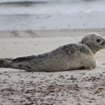 Im Sommer habe ich öfters eine nette Begleitung im Wasser. Eine Kegelrobbe schwimmt immer parallel zum Strand mit mir mit und schaut ab und an mal aus dem Wasser. Schwimmt mal zum Strand in meine Richtung – ganz nah – und dann wieder ab ins Meer um weiter oben auf mich zu warten. Ich hatte sie auch schon beim jagen von Fischen beobachtet, da schaute der Kopf plötzlich mit Fisch im Maul auf. Bisher konnte ich sie nicht fotografieren, vielleicht dieses Jahr.