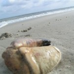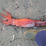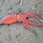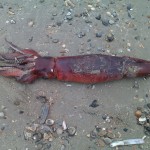 einen Kalamare am Strand – inkl. Tentakel ca 60 cm groß. Da macht man seinen täglichen Morgenspaziergang & dann das.