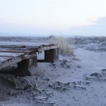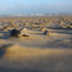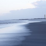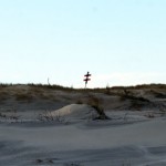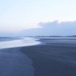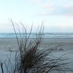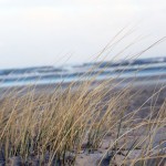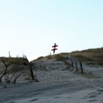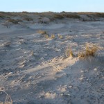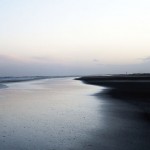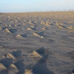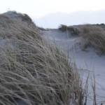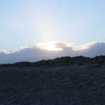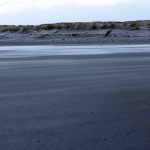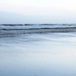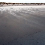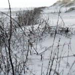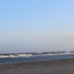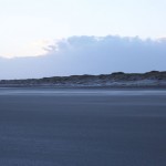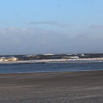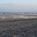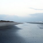 Jahreszeitlich typisch leer. Wellenrauschen – Wind – vereinzelte Möven – Sonne. Der Wind fegt leicht den Sand über den glatten Strand – das Meer ist noch aufgewühlt & langsam kommt die Sonne hinter den Dünen vor.